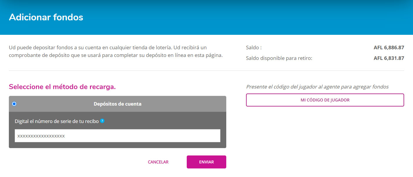 Cómo adicionar fondos a tu cuenta con código de jugador:
