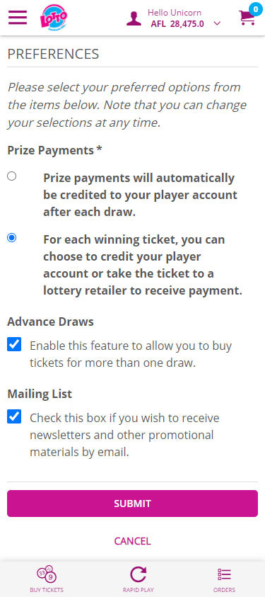 Once registered, follow this quick start guide to using your account to buy Lotto tickets online.